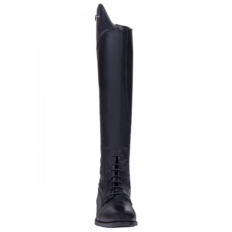 Les bottes d’équitation Lyssa sont des bottes élégantes. La botte est équipée d’une fermeture éclair avec élastique à l’arrière et lacets élastiques à l’avant. Le haut de la botte est décoré d’une subtile rangée de strass et d’une luxueuse épingle Q.