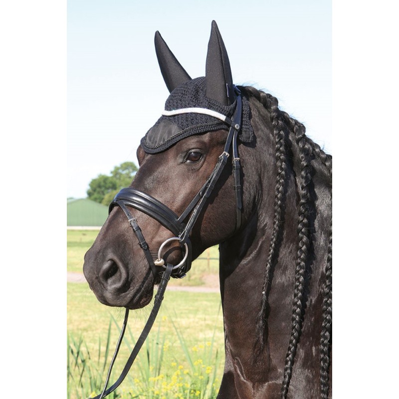 Bonnet en néoprène, insonorisé. Crocheté, avec cordons décoratifs tressés et passepoils contrastés.