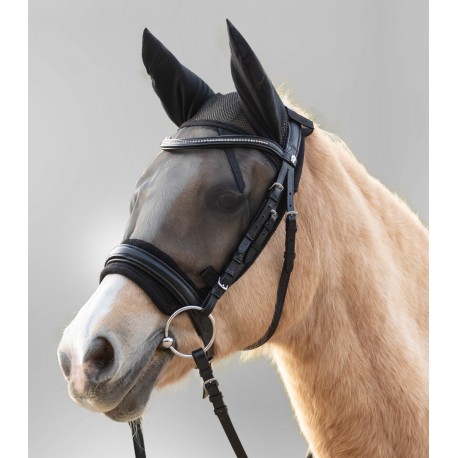 Le masque anti-mouches innovant pour faire du cheval. La matière particulièrement perméable à l’air au niveau des oreilles offre une protection optimale contre les insectes, sans pour autant emprisonner la chaleur. Des fermetures à scratch élastiques permettent de fixer le masque à la bride sans difficulté. Le masque reste mobile et souple au niveau du dessus de muserolle grâce à un insert élastique. Incontournable pour tous ceux qui souhaitent se débarrasser des insectes incommodants pendant leurs ballades à cheval.