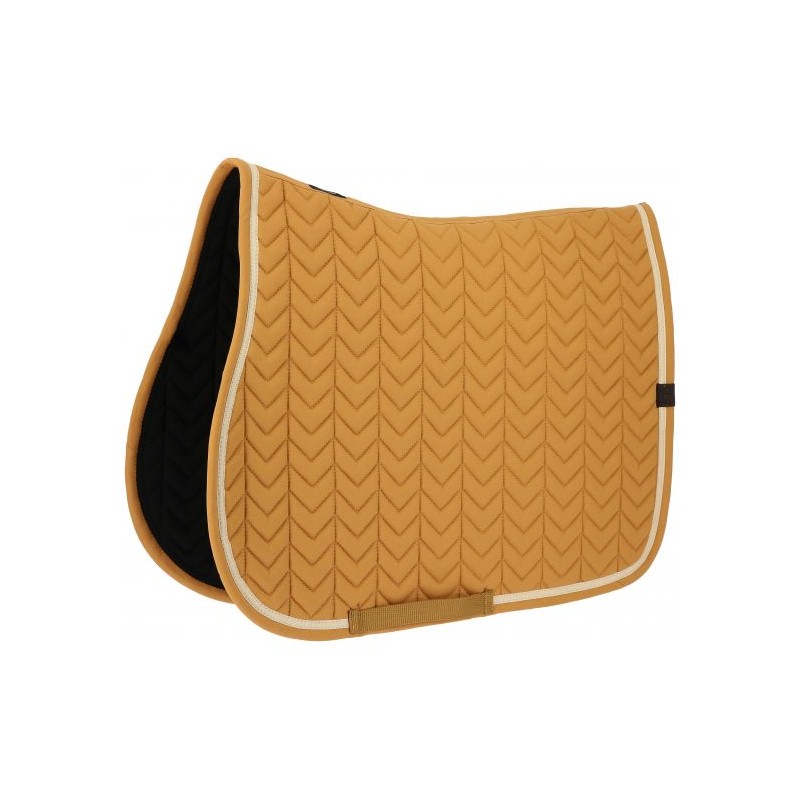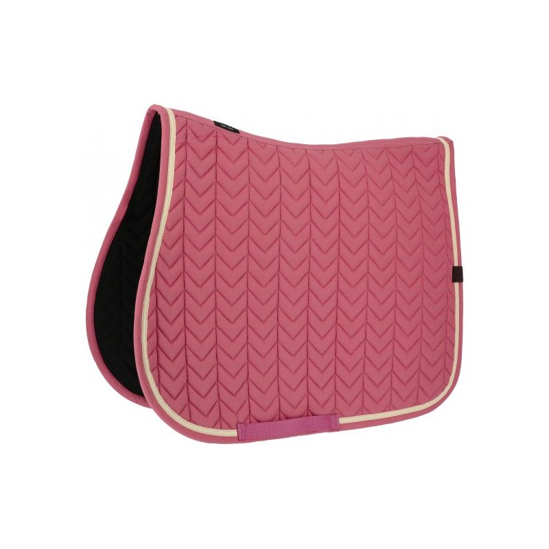 Le tapis de selle Equitheme Softypop se distingue par son élégant motif fishbone, associé à un garnissage en polyfil 200g/m2 pour une absorption efficace des chocs et un maintien durable de sa forme.
