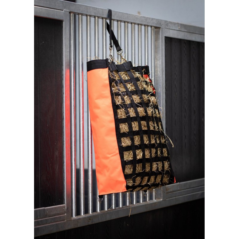 Le sac à foin est facile à attacher à l'aide de deux mousquetons.