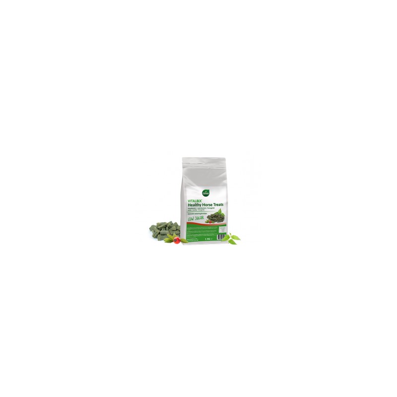 * Vitalbix Healthy Horse Treats sont des morceaux de récompense sains avec une très faible teneur en amidon et en sucre (3% et 4%) emballés avec des ingrédients sains tels que la luzerne, les graines de lin, la pulpe de chicorée, la pulpe de betterave, l'églantier, l'ortie et le fenugrec. Idéal comme récompense après l'équitation et pour le travail au sol, ou tout simplement pour gâter votre cheval….