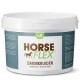 Il s'agit d'un mélange 100% naturel à base d'herbes et de minéraux ayant un effet positif sur la flore intestinale du cheval. HorseFlex intestinal herbs est composé de diverses herbes telles que le fenugrec, l'origan, l'absinthe, le clou de girofle et le romarin qui contribuent à un bon équilibre des bactéries, des levures et des champignons dans les intestins. Il contient également des fibres prébiotiques, qui constituent un terrain propice au développement des bactéries intestinales bénéfiques. Les minéraux comme le magnésium et le sodium sont également très importants pour le bon fonctionnement de l'intestin. Ils retiennent l'eau dans les intestins, ce qui est important pour une digestion normale, et assurent un bon mouvement intestinal.