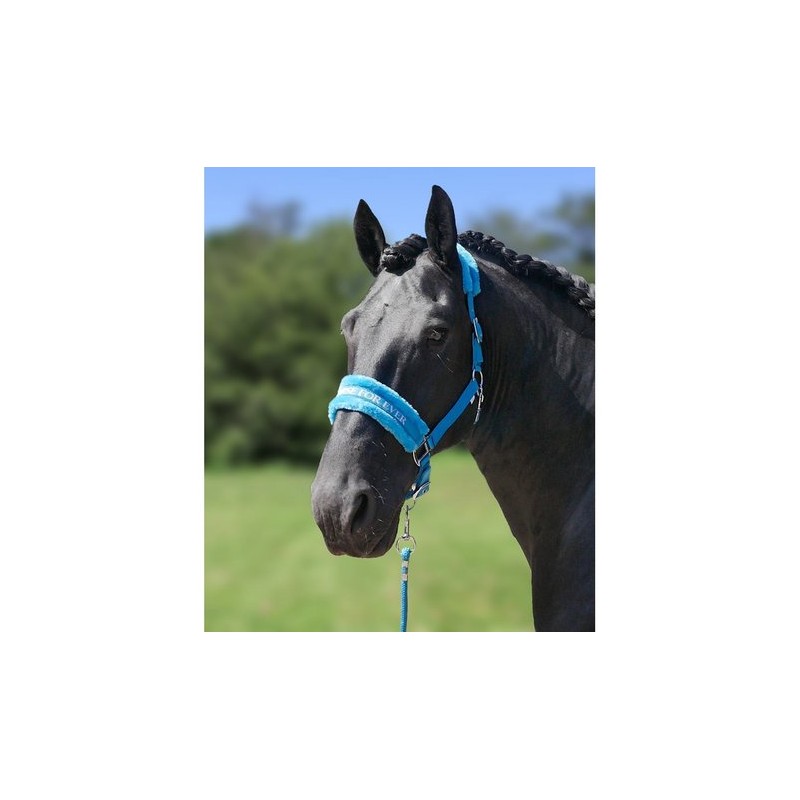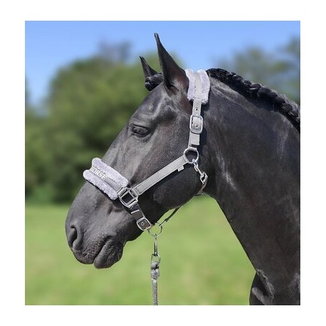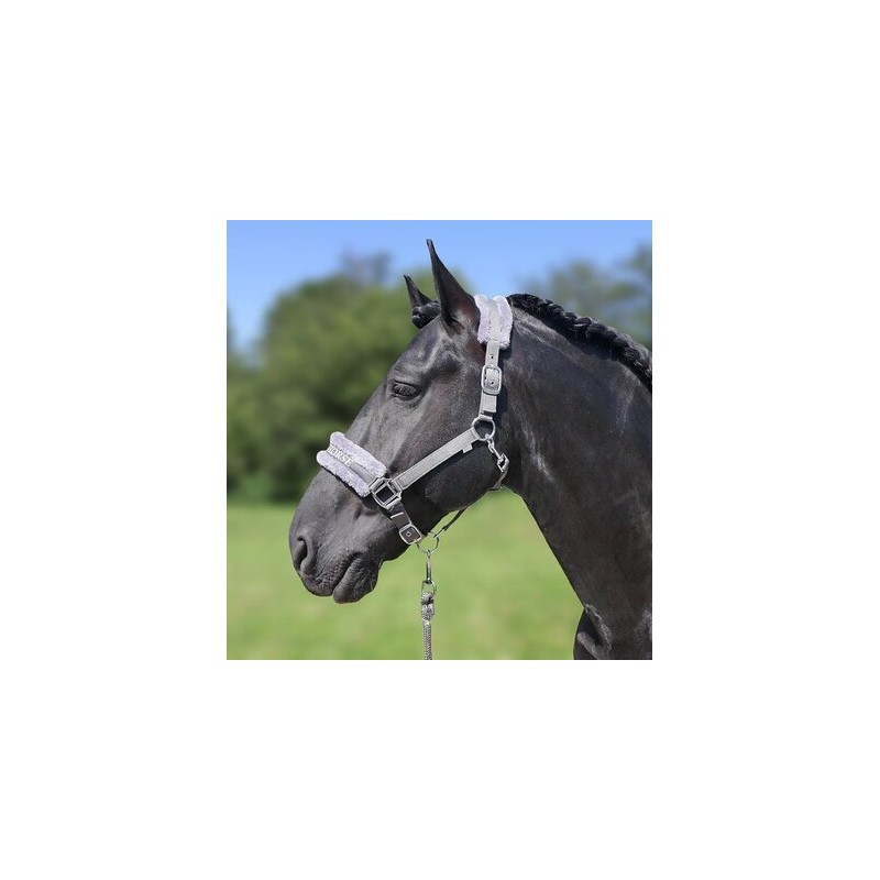 * Le licol souple HB est réglable à plusieurs endroits sur la pièce de tête avec 2 boucles pour maintenir la fourrure au milieu de celle-ci. La muserolle est ornée d'un joli texte.