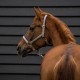 Licol avec longe de 200 cm. Le licol est rembourré en néoprène au niveau de la têtière et de la muserolle et est réglable des deux côtés de la têtière.