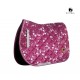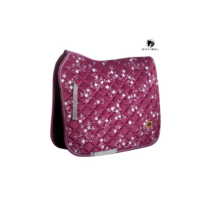 Tapis de selle bordeaux avec fleurs blanches. Fabriqué dans un tissu velouté durable - très doux au toucher.