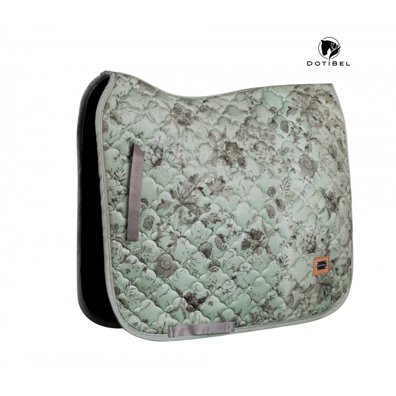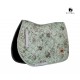 Tapis de selle vert Salvia avec des fleurs grises. Fabriqué en tissu velouté durable - très doux au toucher.