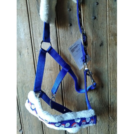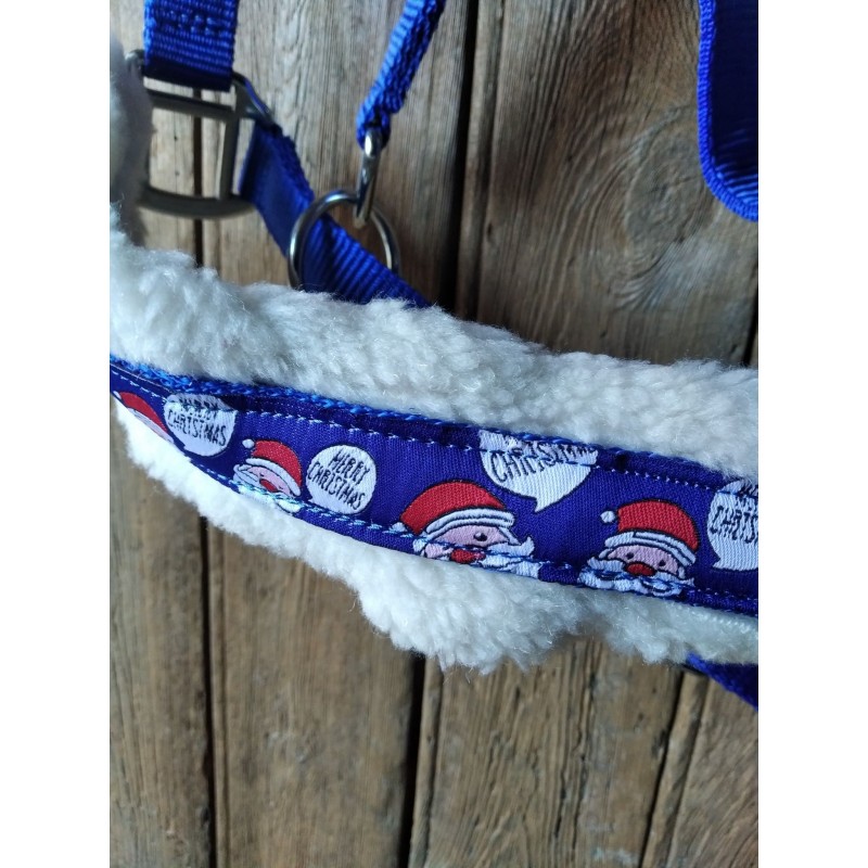 * Licou avec le Père Noël sur la muserolle et la têtière. * Dans la couleur bleue. * Dans les tailles: poney, cob/pur sang et cheval/full. * Réglable en 2 endroits.