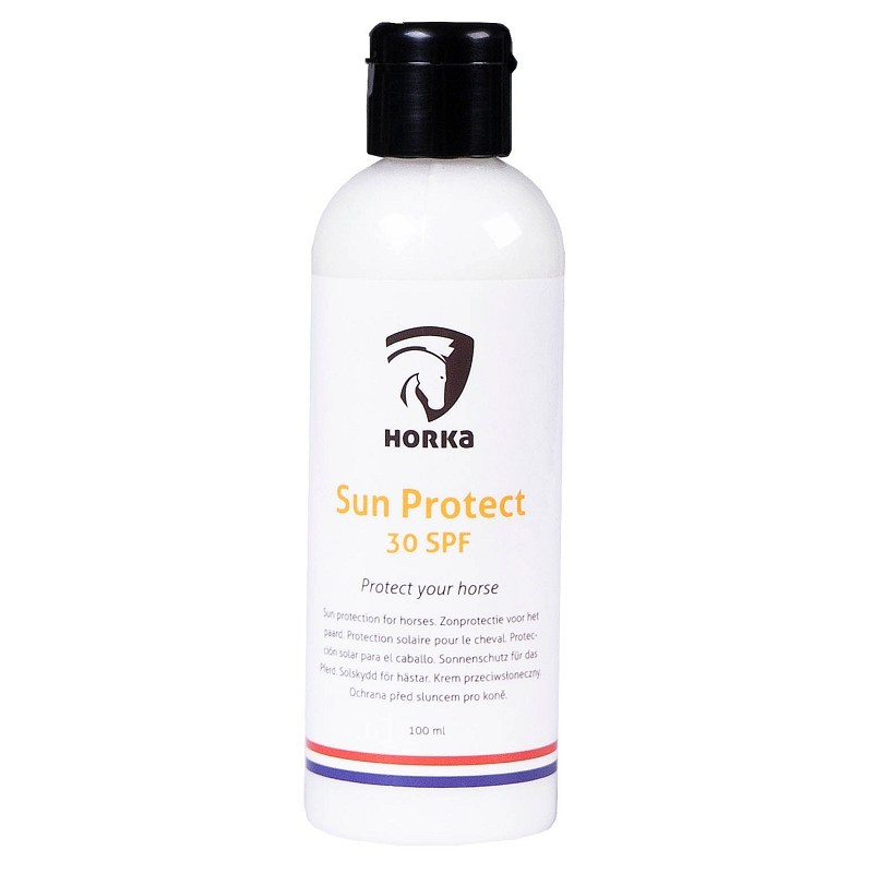 Écran solaire facteur 30 pour protéger la peau du cheval.