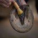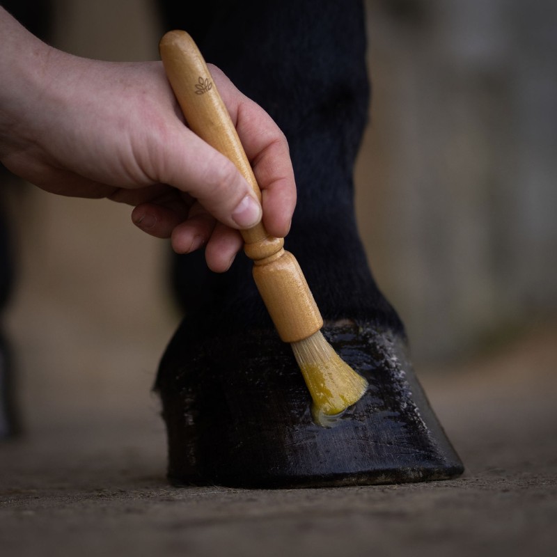 Après avoir nettoyé (et si besoin séché) la zone d’application, munissez vous d’un pinceau et appliquer le baume sur la corne, la sole, la fourchette et les glomes en insistant bien sur la paroi et la couronne périoplique. En cas de lacunes molles et douloureuses ou de fourchettes « pourries », appliquer 1 fois par jour jusqu’à amélioration.