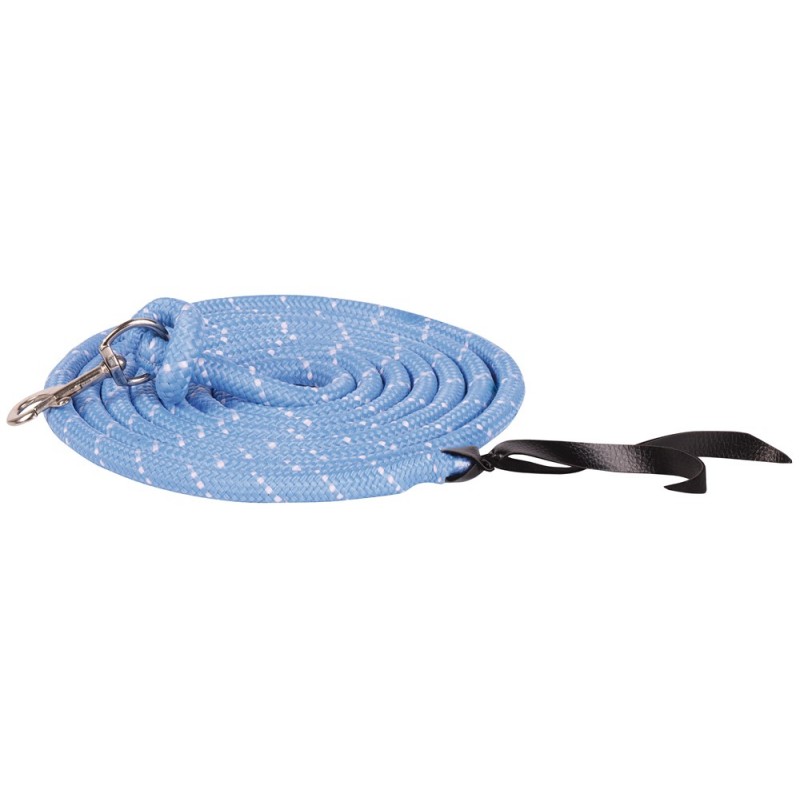 Loosework rope with silver-coloured musketon and flapper at end. Very soft and comfortable to hold, very suitable for freestyle/groundwork.