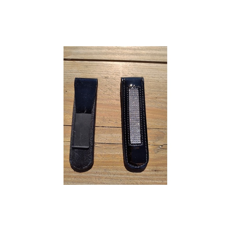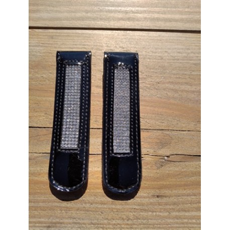 * Boots clips with decorative stones. * You can easily attach these clips to your boots to embellish your riding boots. * Made in lacquer leather.