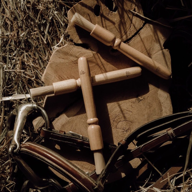 Nellumbo brush with logo for applying natural hoof balms.This 100% wood brush with synthetic fibre bristles is perfect for applying balms and vegetable oils to your horse's hooves.