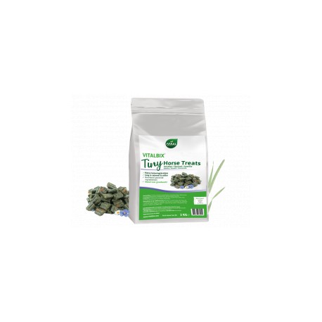* Vitalbix Tiny Treats are small reward chunks packed with healthy ingredients such as timothy tea, linseed, beet pulp, carrot and chamomile. Ideal as a reward for ground work, freedom dressage and clicker training, or just to spoil your horse... Contains no molasses, grains, soy and lucerne.