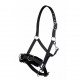 * halsopening met karabijnhaak * sluitingen versterkt met een klinknagel * zilveren rand * onderlegde neusriem * Shet-, pony-, cob- en paardmaat. * Zwart* Nylon