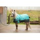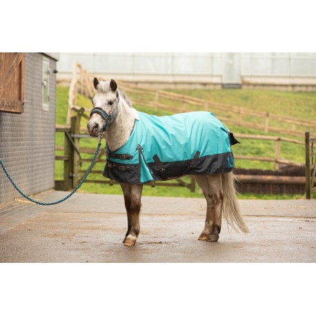 Waterdichte outdoor regendeken met polyester voering, geen naad op de rug en geen vulling. Dubbele snelsluiting voor, staartflap, kruissingels, getapede naden, afneembare elastische bilkoorden.
