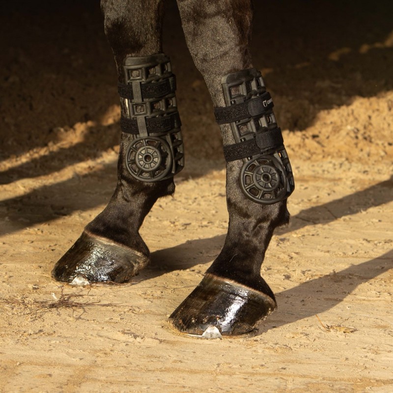 Het soepele, lichte en niet-absorberende materiaal van de peesbeschermers PROTECH zorgt voor een perfecte bewegingsvrijheid van het paard en vermindert het risico op wrijvingswonden. De open zones beperken de opwarming van het paardenbeen maximaal tijdens en vooral na de inspanning. De anatomische vorm van Protech sluit perfect aan bij de pezen om ze zijdelings te ondersteunen tijdens de oefening.