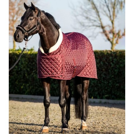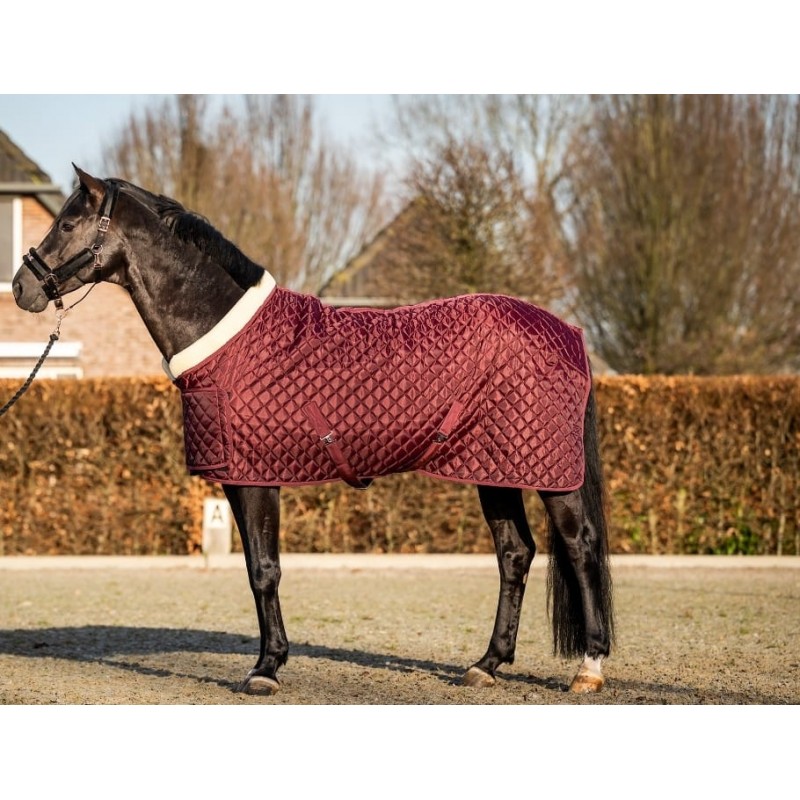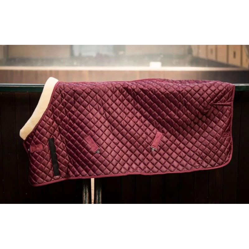 Luxe gewafelde showdeken met teddy bont kraag en 1 voorsluiting,