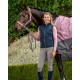 * De bovenrits heeft een klep met een knoopsluiting en de tekst "Equestrian Sports" erop