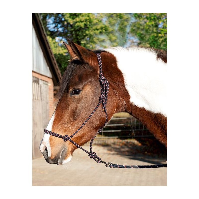 * Touwhalster met bijhorende leadrope.* Verkrijgbaar in drie maten.* Verkrijgbaar in drie kleuren.* Leadrope is 3m70.* Ideaal tijdens grondwerk* 100% propyleen