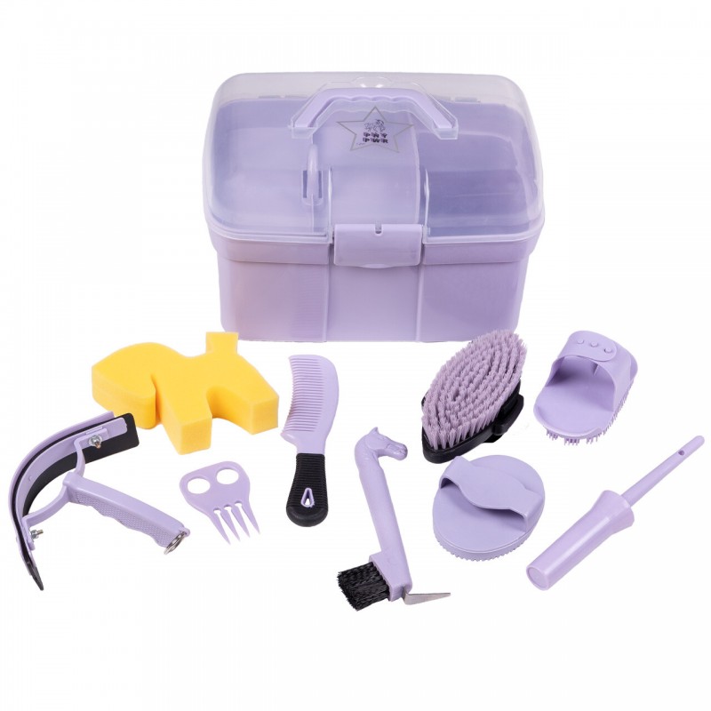 * Goed gevuld met een rosborstel, zachte borstel, sarvisborstel, kam, vlechtkam, zweetmes, hoevenkrabber, hoefvetkwast en spons in paardvorm